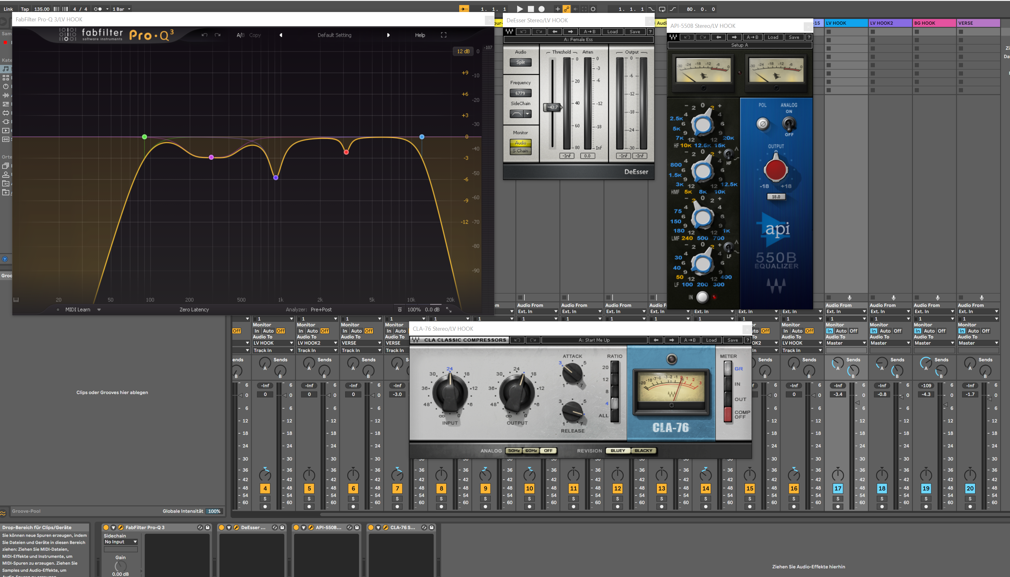 Also hattest du für jedes Vocalfile einen eigenen Kanal, wenn ich das richtig verstehe. Ich habe momentan alle Vocals auf eine Gruppe geroutet und dort bearbeitet. Klingt im Moment noch etwas "topfig und verstopft". Das versuche ich gerade auszubügeln.