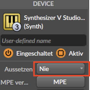 Wähle ich die Spur mit Synthesizer V während der ersten vier Takte wieder an, dann ist der Gesang wieder zu hören.