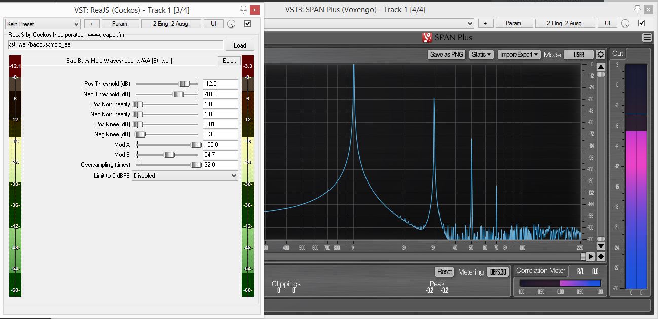 Das Plugin arbeitet mit der Host-Samplerate. Mit dem freien VST Oversampler lässt sich Pafnuty wrappen und auf 88.2k oversamplen.