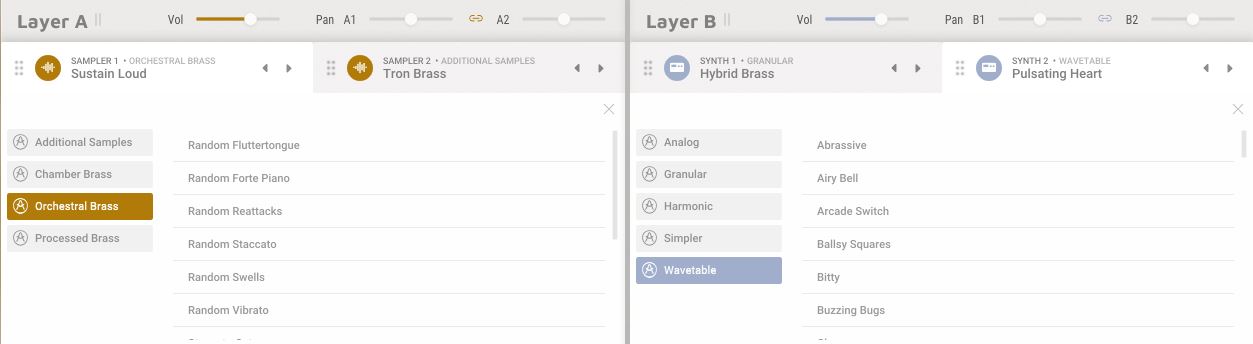 Noch Fragen? Unter der Haube arbeitet also eine komplexe Engine. Ganz deutlich werden hier die beiden Layer A und B. Gleichzeitig erfährt man, dass jedes Layer auch wieder aus zwei Sounds besteht. Wir reden also von insgesamt vier Quellen.