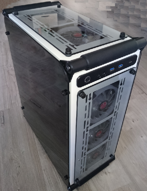Bei der Wasserkühlung werde ich vorerst versuchen (da ich anfangs noch nicht übertakten will), ohne Radiator auszukommen: das Reservoir bringt Kühllamellen mit und wird hinter die 3 Lüfter in der Front montiert. Falls dies nicht reichen sollte, wird ein Radiator nachgerüstet.