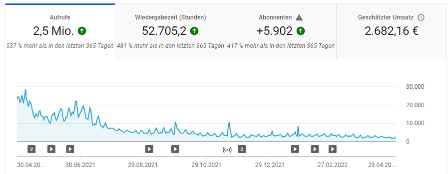 Zusätzlich habe ich bei zu später Monetarisierung die folgenden YouTube-Einnahmen erhalten: