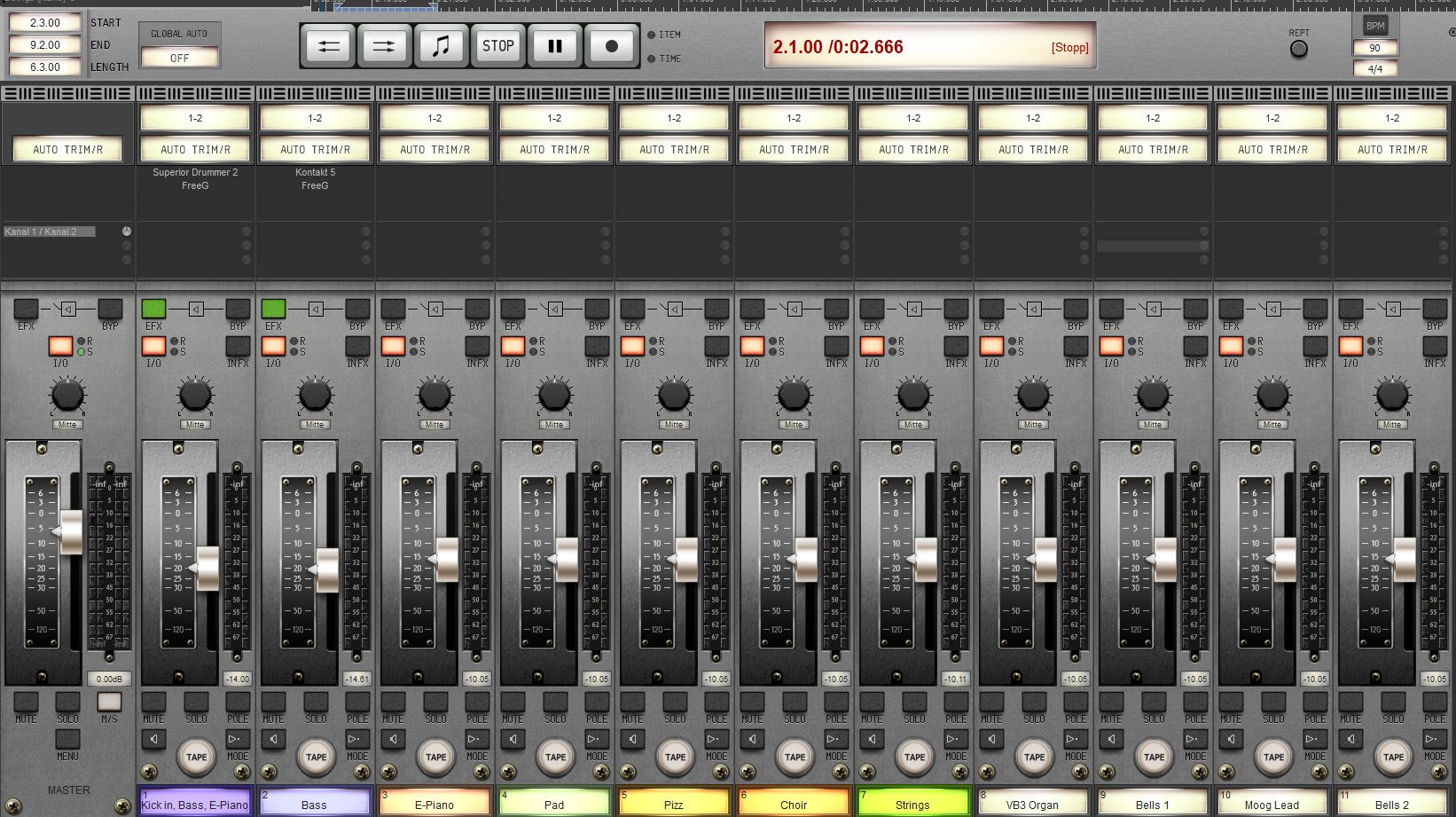 Zeig ich am Besten per Bild. Drei Instrumente gemeinsam als ein Multiinstrument. Jedes Instrument erhält seinen eigenen Tastenbereich (Zone). Spielst du jetzt ein "C2" (und darüber) klingt die Wavestation nicht mehr mit, da deren Bereich nur von C0-B1 geht.Das mit den Zonen versteh ich nicht. Meinst du MIDI Clips? Wüsste zwar den Sinn an mehreren Instrumenten auf einer Spur nicht, außer parallel, aber An/Aus Automatisieren sollte gehen, wenns einzeln sein soll.
