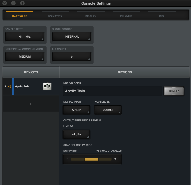 Über die UAD Console Settings / Hardware kann man die Buffersize einstellen.