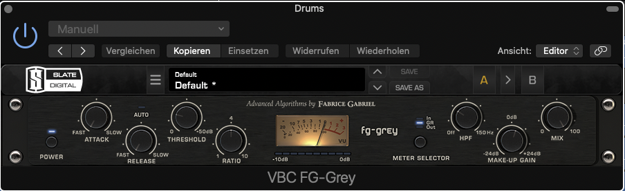 Das hängt immer etwas davon ab welchen Sound ich erreichen möchte. Oft gehen die Drums auf einen Drumbus wo der Slate Grey ist den ich meisten mehr oder weniger einstelle wie weiter oben beschrieben oft aber ohne Parallel Kompression. Was ich auch als Drumbus Kompressor manchmal nehme ist der Waves Abbeyroad R124 dann den Cutter Type mit Super Fuse in Parallel leicht dazu gemischt oder den UA LA2A Silver wenn Räumlich leicht pumpig werden soll (Im musikalischen Sinne). EQ manchmal zusätzlich auf dem Bus.Hast du noch einen Send mit einer FX Spur für Parallelkompression für einzelne Drumspuren(Snare, BD, ein wenig OHs) oder nur alle einzelnen Spuren über deinen DrumBus geroutet?