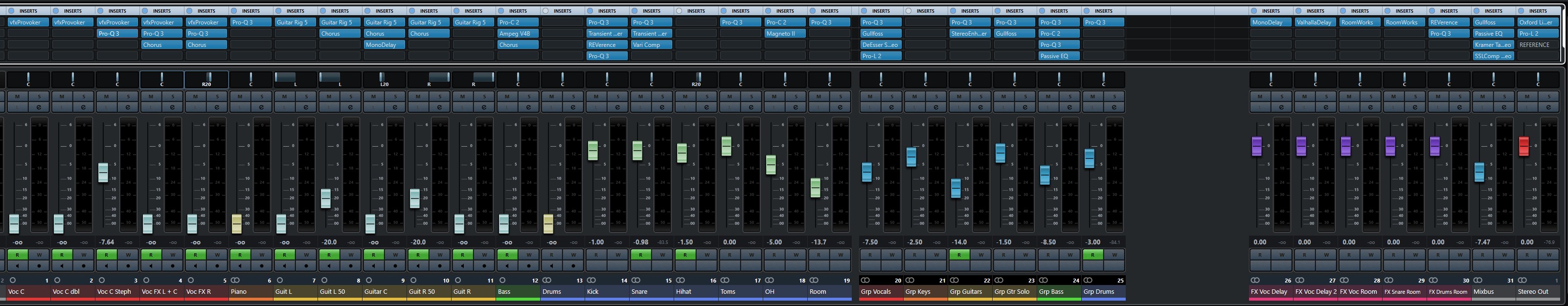 Hier noch meine verwendeten Plugins als Screenshot vom Mixer.
