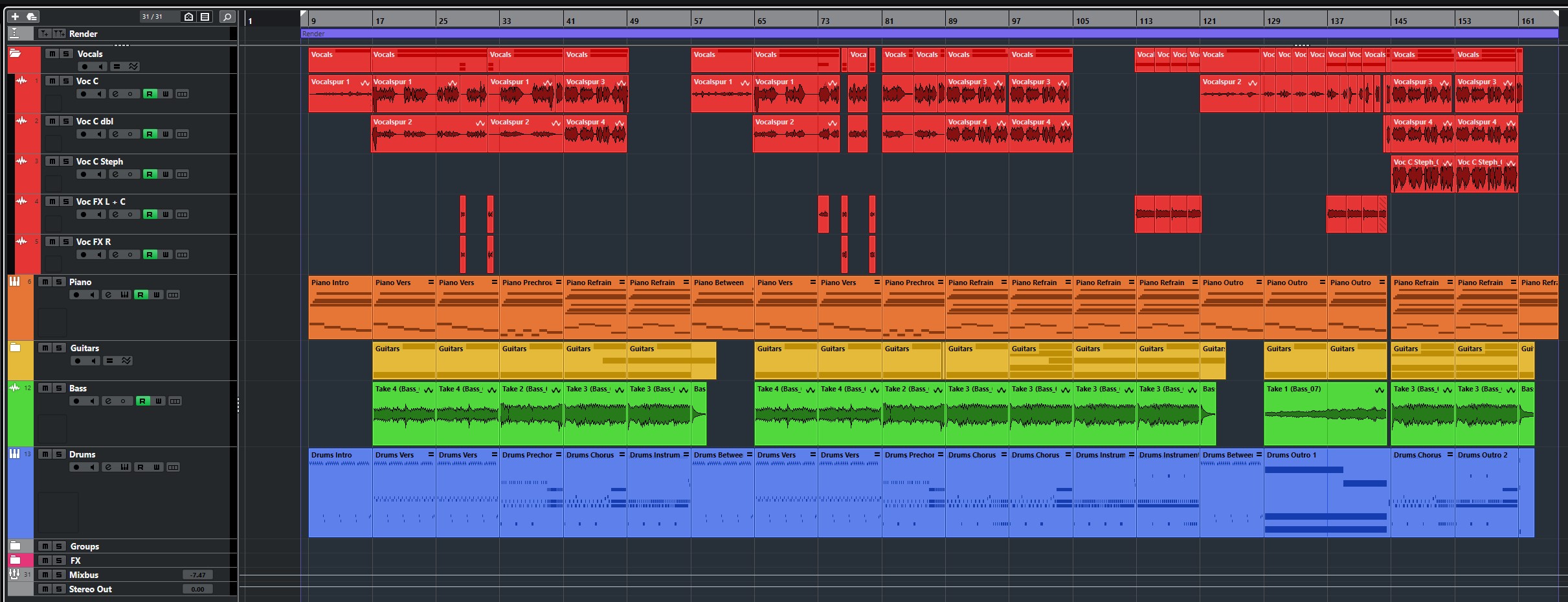 - Ich wollte bei meiner Struktur Intro [ Vers | Pre-Chorus | Chorus | Instrumental ] 𝄆 Outro das Outro nicht weglassen. Ich wollte sehen, ob ich die Steigerung der Outro-Vocals so editiert bekomme, dass sich etwas (dynamisch und emotional) aufbaut. Das Outro ist im Grunde genommen die zu langen 49 Sekunden.