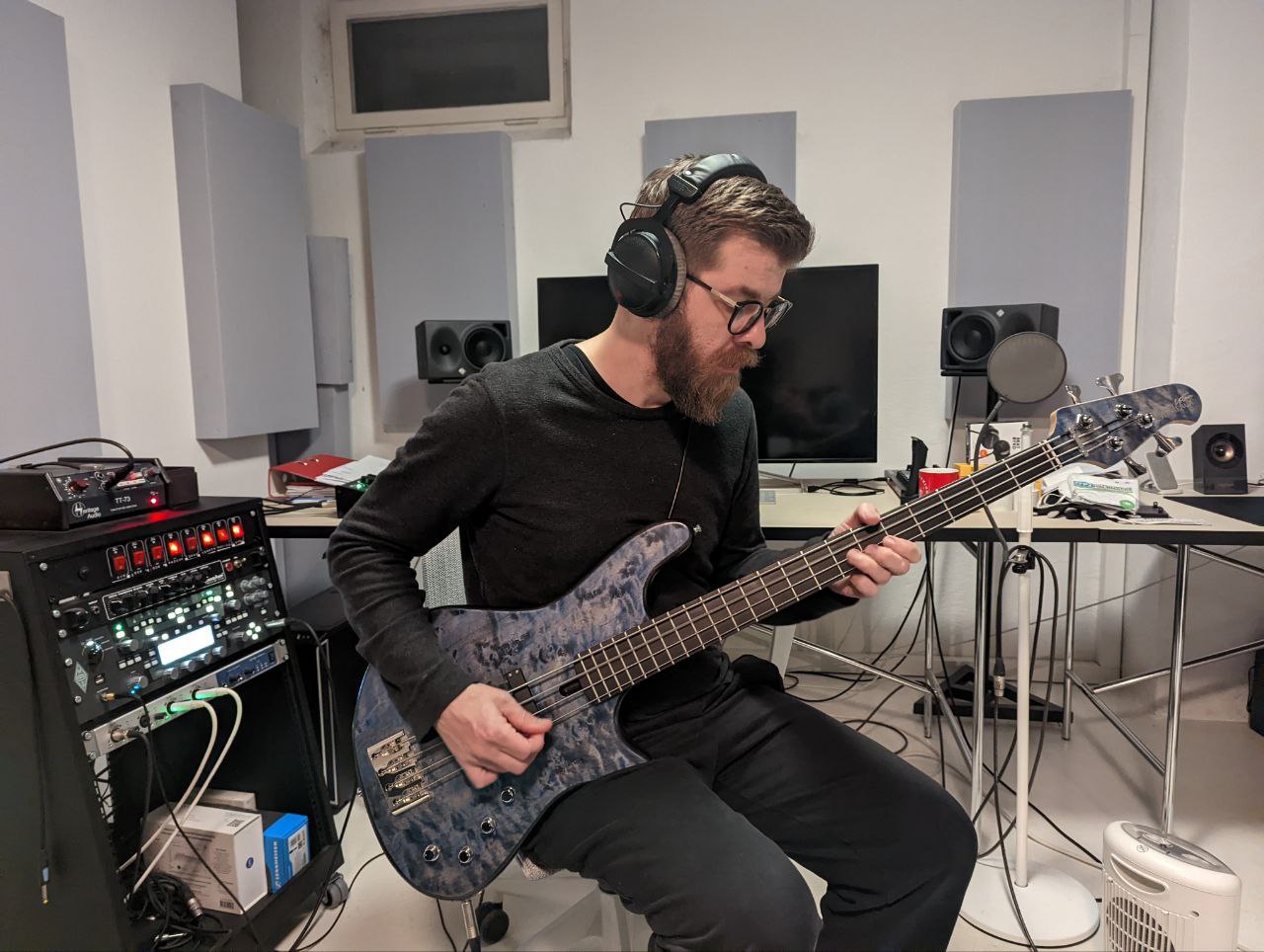 Zu Weihnachten habe ich mir gebraucht eine Opa-Rock-Gitarre von Schecter gekauft, die auf den Aufnahmen zu hören ist.