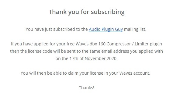 kann es sein, dass du den Waves IR-L Convolution Reverb for FREE meinst?Die ersten 2-3 Leute haben berichtet den Code ziemlich unmittelbar erhalten zu haben.