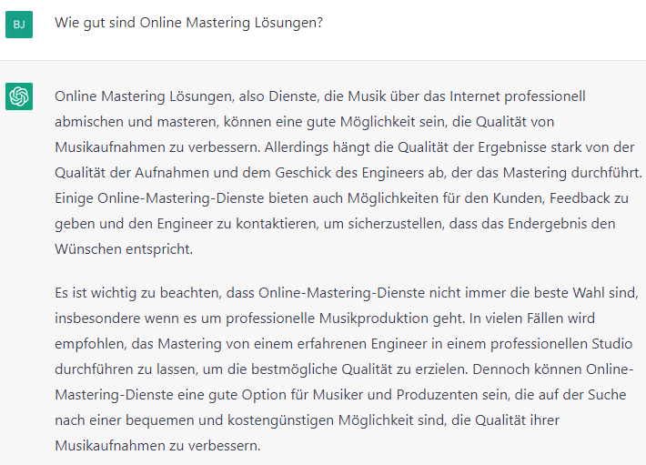 Das müsste die KI dann natürlich ebenso gut entscheiden, ansonsten kann man sich das sparen.Wenn ich was zum Mastern gebe, dann auch weil ich davon ausgehe, das ein Profi besser entscheiden kann, wie es am Ende klingen soll.