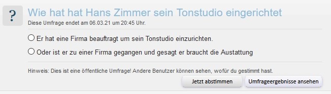 Also Du meinst das in Läden wie Rock Shop,Musicstore, Just Music nur Verkaufs-hippi-Nasen sind diese Firmen nicht im Hintergrund auch eine Abteilung die für Tonstudios zuständig sind. Oder das manche Toningeneur auch nebenbei da im Laden arbeiten?Ja klar - wenn du n kleines bastelhomestudio willst geht das klar.Aber diese Stores bieten doch Professionelle Beratungen so habe ich es bei Rock Shop in Karlsruhe gesehen.
