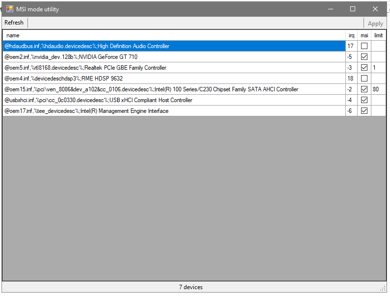 - Treiber von "Line-Based" auf "Message Signaled-Based Interrupts" stellen (MSI_util_v2)